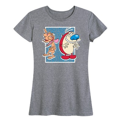 Ren & Stimpy - Happy Happy Joy Joy - Women's Short Sleeve Graphic T-Shirt - Step into the wacky world of Ren & Stimpy with graphic apparel featuring the eccentric duo, Ren and Stimpy. These designs bring their outrageous, over-the-top antics to life in a colorful and fun way.
