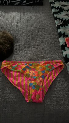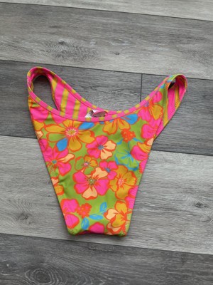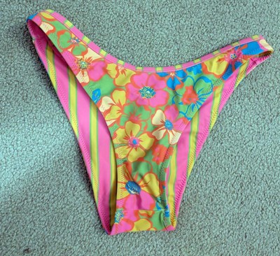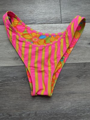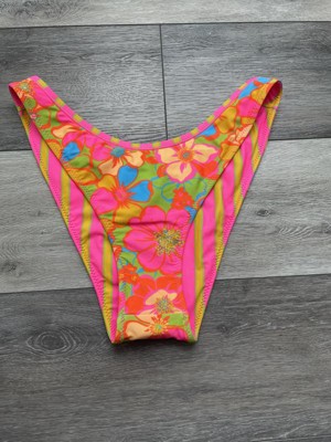 I received this Women's Reversible Contrast Binding Ultra High Leg Super Cheeky Bottom - Wild Fable™ Green Floral Print/Pink and Orange Striped XS for free from Hey Bullseye to facilitate this review. This is so cute! I got it for my daughter. It is a 2-in-1-with a reversible design-it’s floral on one side and stripes in the other-perfect for vacation!