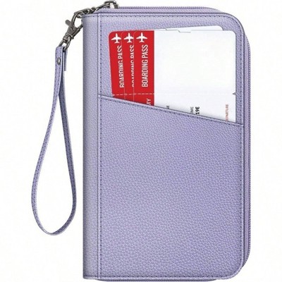 Women's RFID Leather Card & Passport Holder, 45-Slot Bifold Zipper Wallet with Wristlet Purple Standard