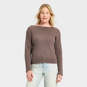 Women's Long Sleeve Ribbed Boat Neck Pullover Sweater - Universal Thread™ - 1 of 3