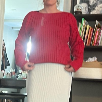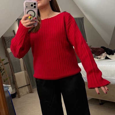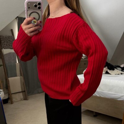 Ribbed boat neck red sweater