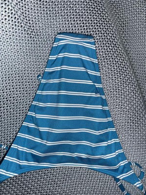 Received the matching bottoms for the teal blu and white striped triangle bikini top. I have to say I was a little skeptical with the high leg part as my daughter is 5feet 101pounds. It fit her perfectly and still covered areas.
