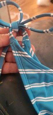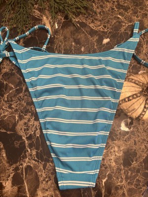 Women's Ribbed Stripe Low-Rise Ultra High Leg Super Cheeky Bikini Bottom - Wild Fable™ Teal/White XXS