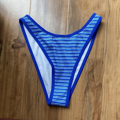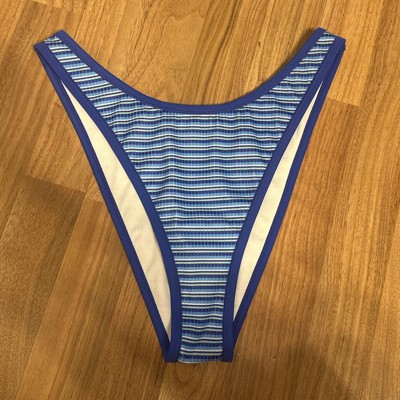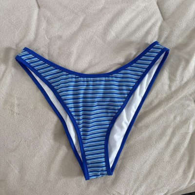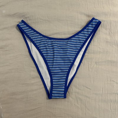 Women's Ribbed Textured Low-Rise Ultra High Leg Super Cheeky Bikini Bottom - Wild Fable™ Blue/White Striped XS: Recycled Polyester, Pull-On