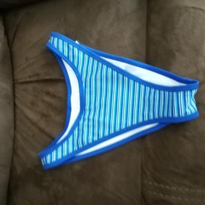 [This review was collected as part of a promotion.] This is the women’s ribbed textured low-rise ultra high leg super cheeky bikini bottom. I got this in the blue/white in an XS. I wear a size 0 mostly 2 in shorts I’m 115 pounds and this fit perfectly. It fits just above the hip bone and is wide enough for good coverage where you need it. The fabric is not thin and the elastic band keeps this in place while swimming or walking around. The main color is a royal blue that is absolutely beautiful. I received an incentive to write this review.