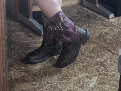 The Rocky Legacy 32 takes a classic western silhouette and adds the latest in comfort and technology. These women's 11-inch pull-on square toe boots, in brown and magenta, are designed to offer all-day comfort, safety and stability. With a stitch-out construction, an oil- and slip-resisting proprietary Nicotine Vibram rubber outsole with a cushioned EVA midsole, and a fiberglass shank, these boots are built to last. Getting into these boots is easier than ever with Rocky's Expansion Fit Seam that stretches when putting the boot on and then returns to its original shape. If you're looking for a women's western boot that looks as good as it feels, get the Rocky Legacy 32.