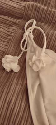 We got this for my daughter as she wanted a white or neutral bottom to go with various colorful tops. After getting this, I think we should have gone the other way. Maybe it's because I'm the data, but the white in this bottom is almost see through (my wife and daughter say it's fine). You be the judge! One note beyond color - we all had trouble with the side ties.