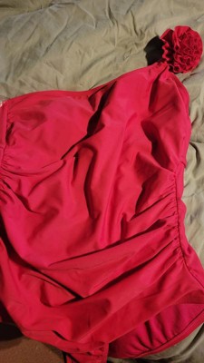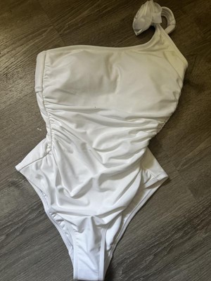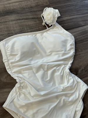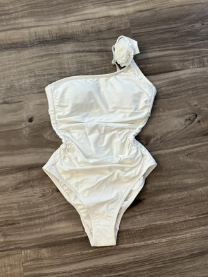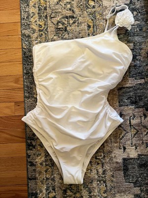 Turn heads on sunny outings with this Rosette One Shoulder One-Piece Swimsuit from Shade & Shore™. This one-shoulder swimsuit is crafted from stretchy tricot fabric with a full lining for ease of movement in and out of the water. It features a rosette design on the strap, and a shirred front with tummy control properties for a touch of flattering style. The breezy cutout back with hook fastener and adjustable shoulder straps make it easy to find the right, secure fit, and the removable cups offer customizable coverage.