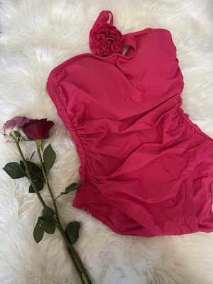 Women's Rosette One Shoulder Medium Coverage Tummy Control One Piece Swimsuit - Shade & Shore™ Pink - 2 of 3Women's Rosette One Shoulder Medium Coverage Tummy Control One Piece Swimsuit - Shade & Shore™ Pink - 3 of 3