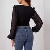 Women's Ruched Deep V Neck Button Front Smock Lantern Sleeve Crop Top Blouses