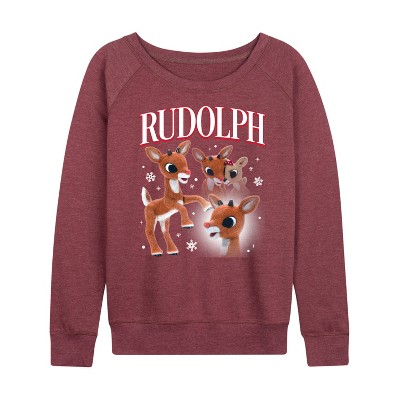 Women's Rudolph Clarice Bootleg Lightweight French Terry Wide Neck Long Sleeve Graphic Shirt - Heather Maroon - 1X