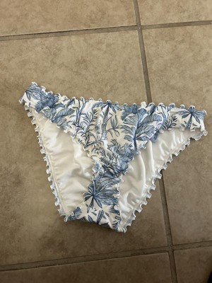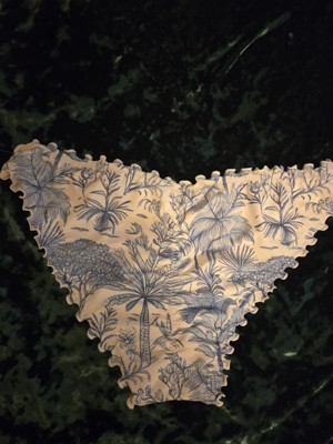 What a cute print! The ruffle edge is so sweet and dainty and the print is pretty and unique. The fit is good for a thin build and I like the thicker sides that feel more sturdy than a string bikini. Overall a solid choice.