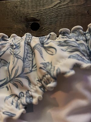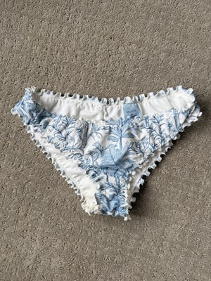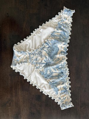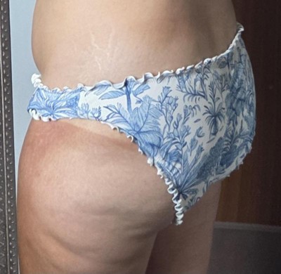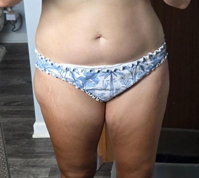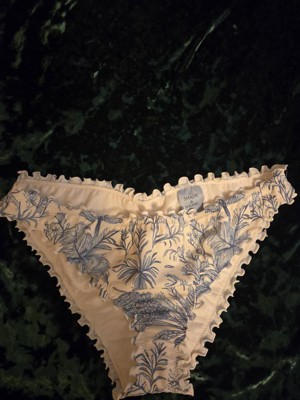 I received this Shade & Shore ruffle Toile Print Bikini Bottom from Bullseye in exchange for my honest review. The print is absolutely lovely and very on-trend. The ruffle detail is adorable. This is a low waist cut so flabby belly’s, beware :).