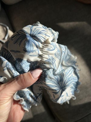 These are super cute and flattering bikini bottoms! I love the ruffle edge and the cinched back. They’re nice and stretchy so if you’re between sizes you can size down. The pattern reminds me of antique plates which I love.