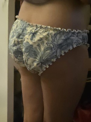 • A: Yes, it features ruffled trimming, a low-rise silhouette, and elastic at the leg openings.