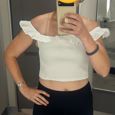 [This review was collected as part of a promotion.] This smart tank top by wild fable is an adorable addition to any young women wardrobe. I love that it is crop length, even though I don’t have the body figure for it you can address this item up or down. I definitely love the feminine touches like the ruffles along the Top and the ability to have the shoulder straps either up or down this top is designed with ruffled frill accenting the front back and shoulders and it is tailored in a sleeveless regular fit style. I’m typically a size 14. I ordered this in an extra large. It was snug as it is meant to be but fit true to size I received an incentive to write this review.