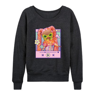 Women's Rugrats Bff's Since 1991 Lightweight French Terry Wide Neck Long Sleeve Graphic Shirt - Heather Charcoal - Small