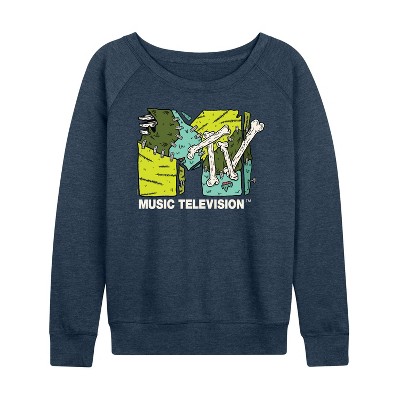 Women's Rugrats It's Hallow Scream Lightweight French Terry Wide Neck Long Sleeve Graphic Shirt - Heather Indigo - Medium