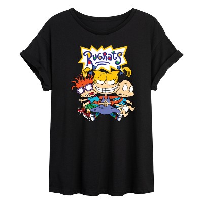 Rugrats - Rugrat Squad - Women's Oversized T-Shirt - Embark on a nostalgic adventure with the Rugrats graphic apparel collection! Showcasing beloved characters like Tommy, Chuckie, Angelica, Phil, Lil, and more, each design captures the playful spirit and imagination of the iconic animated series. Perfect for fans of all ages, these pieces bring childhood memories to life with fun, colorful style.