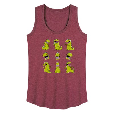 Rugrats - Will Work For Reptar - Women's Racerback Tank Top - Embark on a nostalgic adventure with the Rugrats graphic apparel collection! Showcasing beloved characters like Tommy, Chuckie, Angelica, Phil, Lil, and more, each design captures the playful spirit and imagination of the iconic animated series. Perfect for fans of all ages, these pieces bring childhood memories to life with fun, colorful style.