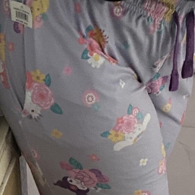 Indulge in the adorable world of Sanrio with these Hello Kitty and Friends women's pajama pants, a delightful addition to any sleepwear collection. The sleep pants are adorned with a cute and colorful pattern featuring beloved Sanrio characters - Hello Kitty, Kuromi, My Melody, Cinnamaroll, and Pompompurin. These pajama pants beautifully capture the essence of these beloved characters through their design and comfort. The pants are a top-quality fabric blend of 92% polyester and 8% spandex.