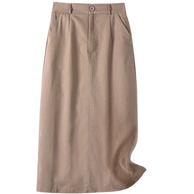LEVEN SIXTEEN Women's Satin Midi Skirt - High Waist Slit Design with Comfortable Elastic Waistband Black Black XX-Large