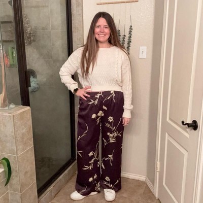 [This review was collected as part of a promotion.] These women’s satin pull-on pants from A New Day are awesome and look and feel so great on. They have a fun unique pattern that can be worn for various seasons. The fit of the pants are perfect and true to size and I’m wearing my usual size large. My measurements are 33 inch waist and 41 inch hips.