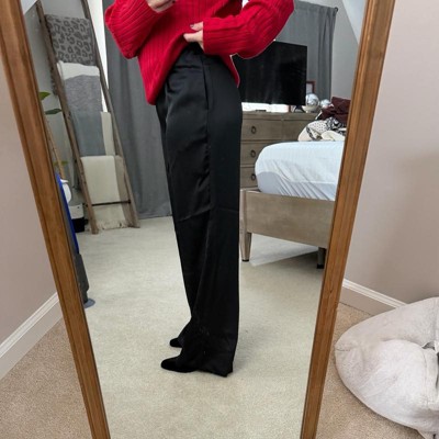 [This review was collected as part of a promotion.] I am 5’2 and 125lbs. I ordered a size small in these pants and they fit really well. However, I just wasn’t a fan of these pants. The satin material is so thin that they’re almost see through. I also found that they were so clingy, so much static that I can’t see going through a whole day without them clinging all over. The length was long even with a small heel on.