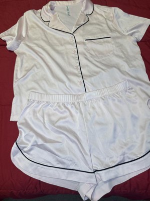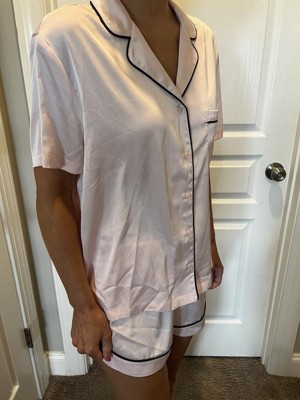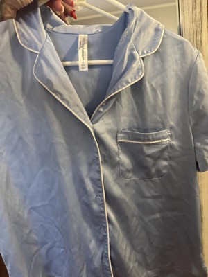 Slip into something soft with this Women's Satin Short Sleeve Notch Collar Shirt and Shorts Pajama Set - Wild Fable™. The short sleeve, button-down shirt pairs effortlessly with matching shorts for an easy bedtime look. The smooth satin fabric feels light and comfy, whether you're lounging or turning in for the night. With a relaxed fit and subtle sheen, this set brings a chill vibe to your nighttime routine.