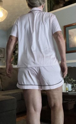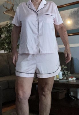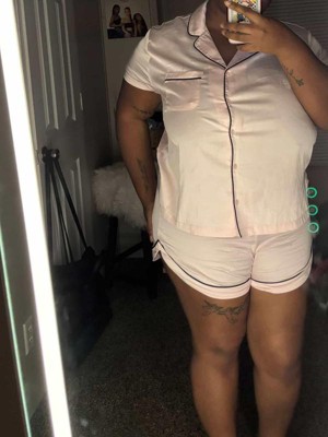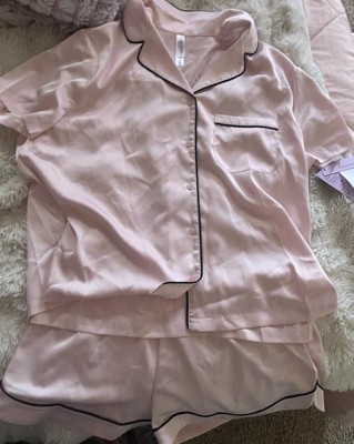 The Women's Satin Short Sleeve Notch Collar Shirt and Shorts Pajama Set by Wild Fable™ is so soft! These pajamas are amazing! They are true to size, the color is awesome in a light pink. I will say if you are larger on the bottom I would go up a size if you prefer a more loose fit. These can be worn in both summer and winter, as they aren’t super thin.