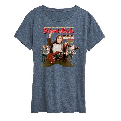 Women's School of Rock Dewey Finn Playing the Guitar Short Sleeve Graphic T-Shirt - Heather Royal Blue - Medium