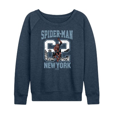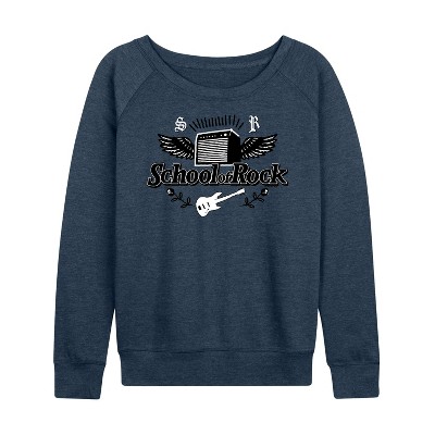 Women's School of Rock School Crest Lightweight French Terry Wide Neck Long Sleeve Graphic Shirt - Heather Indigo - Medium