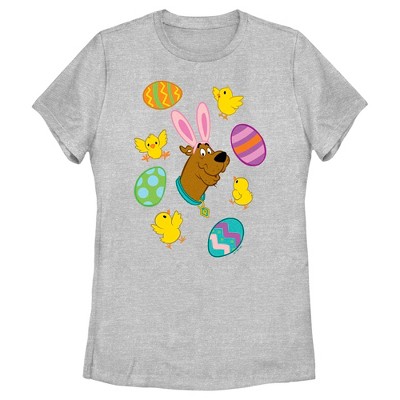 • Grab a basket and go on a hunt for this Easter women's t-shirt! Featuring Velma, Shaggy, Scooby-Doo, Fred, and Daphne surrounded by flowers, baby chicks, and decorated eggs.