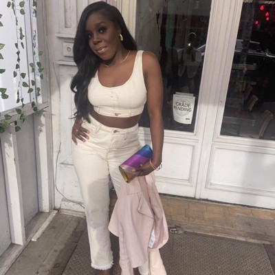 Super cute top, challenging to get on but once it’s on so cute! Paired it with high waisted pants