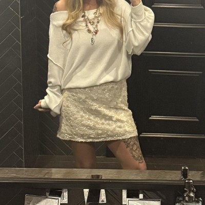 Great skirt in the cream color with the mix of different size sequins/paillettes. It fits true to size and is comfortable. Definitely recomend.