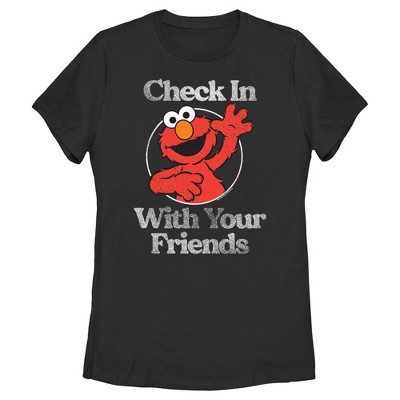 • Strut your stuff with this stylish new women's t-shirt that is perfect for every occasion! Featuring an elegant Elmo wearing a tuxedo and the phrase: "Elmo's Just Checking In! How Is Everyone Doing?" printed in white lettering below him.