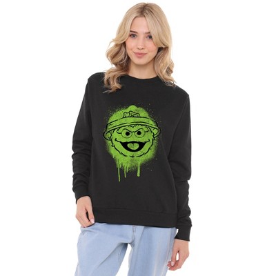Women's Sesame Street Oscar The Grouch Graffiti Spray Face Crew Sweatshirt, Black, Small