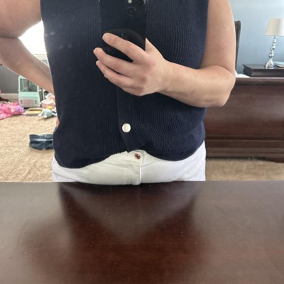Warm and stylish, this Shaker Stitch Button-Front Cardigan from Ava & Viv™ is your staple for casual outings. Made from a fabric blend of cotton, recycled polyester, and recycled nylon, this sleeveless cardigan provides cozy comfort. Tailored in a regular fit, this V-neck cardigan boasts a front button-down style for easy wear. Layer this tunic cardigan over a long-sleeve top for a chic look.