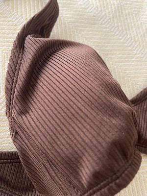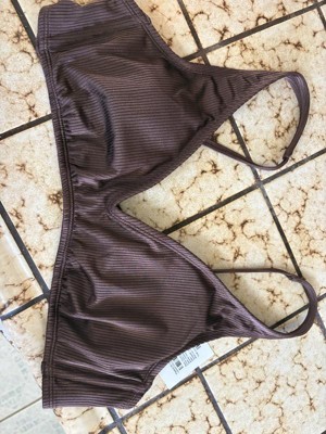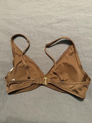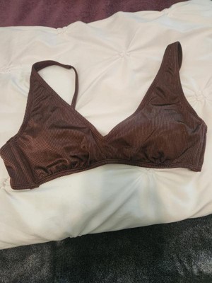 Women's Shiny Ribbed Plunge V-Neck Bralette Bikini Top - Shade & Shore™ Brown