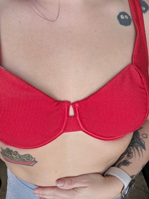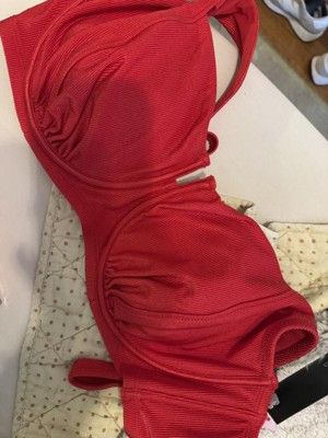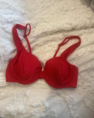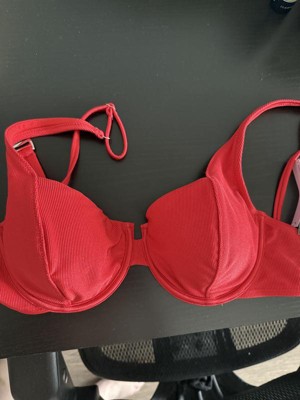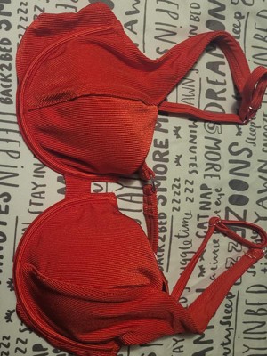 The Women's Shiny Ribbed Underwire Bikini Top by Wild Fable is a beautiful swimsuit top. I have a large chest DD and the size large in this top is small. I would suggest this top for a large C-D cup chest. Aside from that it is well made and a pretty shiny red color. I would recommend.
