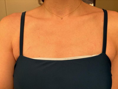 Extremely disappointed with the terrible rouging on the side. The one I received is sewn different than the one the model is wearing. The extra fabric on the front makes it look like the suit is not tight. If it was a single layered black spandex/lycra layer (Which it looks like in the photo) it would look way better. Sending back ASAP!