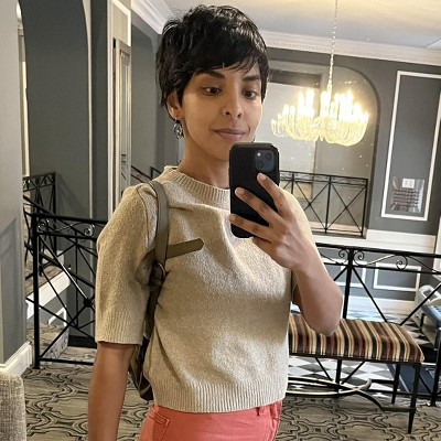 Influencers love this top, and I agree the style and feel is great. However, I’ve gotten tops in this material from target before, and they wash horribly and will pill quickly. Also, target is going off the rails in terms of their prices.