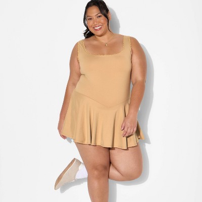 Women's Short Sleeve Faux Suede Mini Dress - Ava & Viv™ Tan