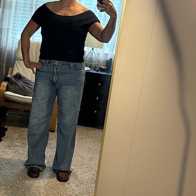 I’m not sure why this is listed as a “suede” top—it’s just cotton, though it is comfy. I wouldn’t pay $30 for it but I got it on sale. I like the length because it’s not overly cropped; hits at the waist mband for me on midrise jeans. It is *very* off the shoulder, though. Like, my boobs are the only thing keeping the shirt on my body sometimes. Smaller chested girls might want to size down or give this one a pass.