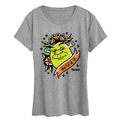 Women's Shrek Shrek Tattoo Portrait Oversized Graphic T-Shirt - Heather Grey - X-Large