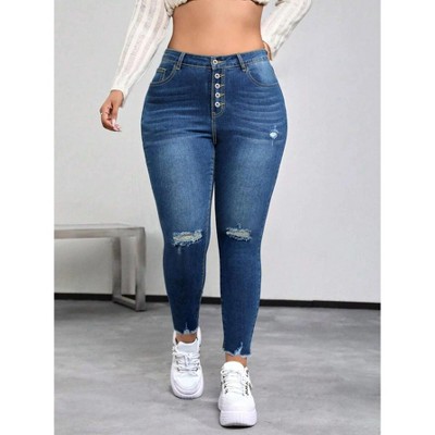 Sol Living Women's Skinny Jeans Mid Waist Elastic Stretch Denim Fabric Slim Pencil Design Plus Size Washed Technique for