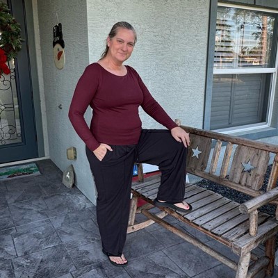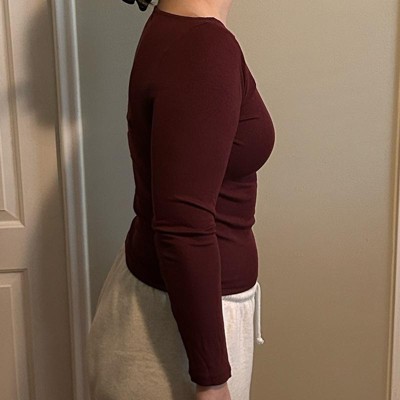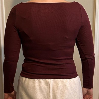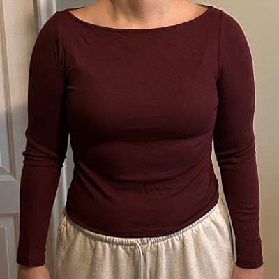 Women's Slim Fit Long Sleeve Boat Neck T-Shirt - Wild Fable™ Burgundy XXS