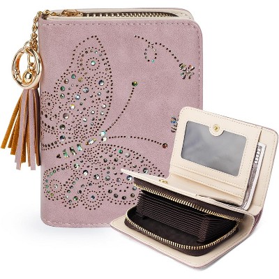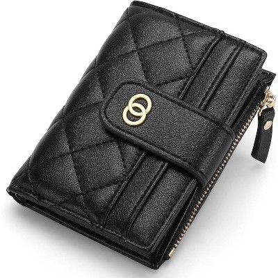 Women's Small Bifold Leather wallet Rfid blocking Ladies Wristlet with Card holder id window Coin Purse Black-Small 5.31x 3.74 x 1.18