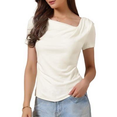 - This beautifully crafted blouse features delicate smocking across the shoulders, short sleeve, round neck and loose fit design. This summer t-shirt is comfortable to wear.