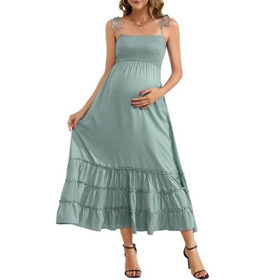 Product Name: Women's Smocked Ruffle Maxi Sun Dress Green Large -White Mark